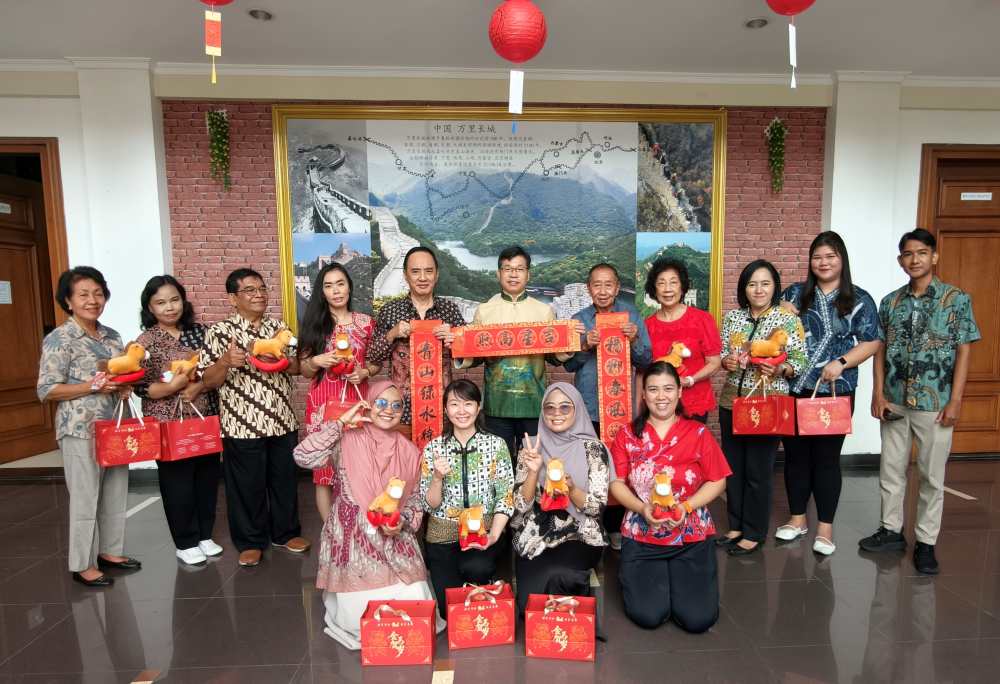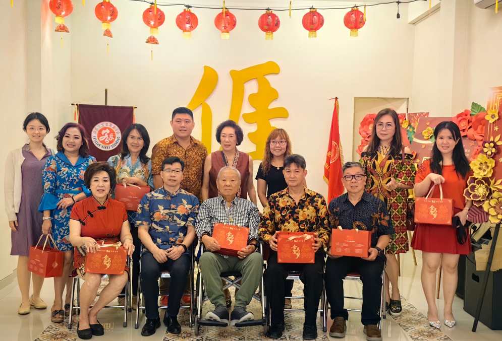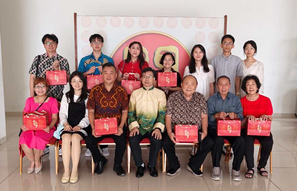 叶素同有关侨领、学校师生座谈交流,发放春节“暖心包”,并致以新春祝福,感谢其长期以来致力于推动汉语教学、弘扬中华文化,为促进中印尼友好作出积极贡献。