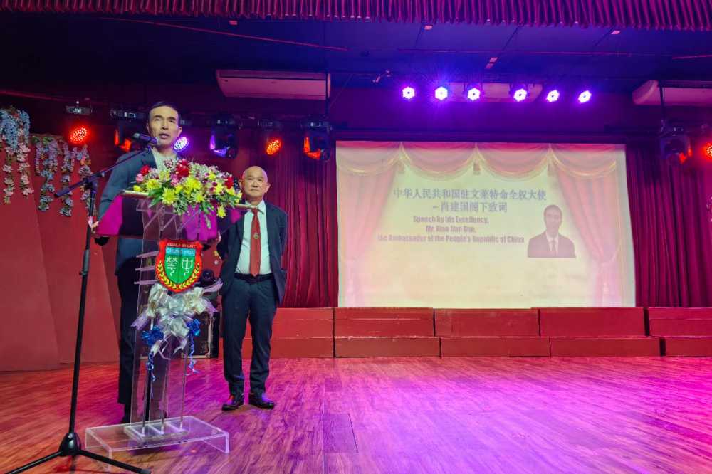 AseanAll /东盟全景讯 中国驻文莱大使馆消息,2025年11月19日,中国驻文莱大使肖建国应邀出席文莱马来奕中华中学建校94周年校庆活动,与马来奕中华中学董事长刘小源、各华校代表等各界友好人士亲切交流。