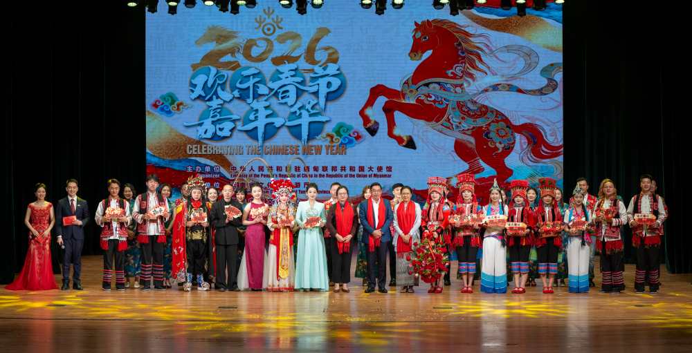 AseanAll /东盟全景讯 中国驻缅甸大使馆消息,2026年2月5日至6日,中国驻缅甸使馆在仰光国家大剧院举办2026年“欢乐春节嘉年华”。中国驻缅甸大使马珈、缅甸总理纽梭等高层、多国驻缅使节、华侨华人、中资机构、留学生、各界友人共两千余人参加。