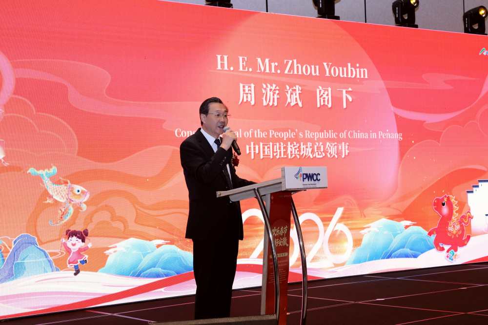 AseanAll /东盟全景讯 中国驻槟城总领事馆消息,2026年2月8日,中国驻槟城总领事周游斌出席“欢乐春节·美好安徽”走进马来西亚活动,马来西亚槟州首席部长代表、槟州旅游及创意经济行政议员黄汉伟、立法议会议长刘子健、马来西亚国家旅游局副主席杨顺兴、吉隆坡中国文化中心主任韩宁、中国安徽省文化和旅游厅副厅长储晓焱等出席活动。