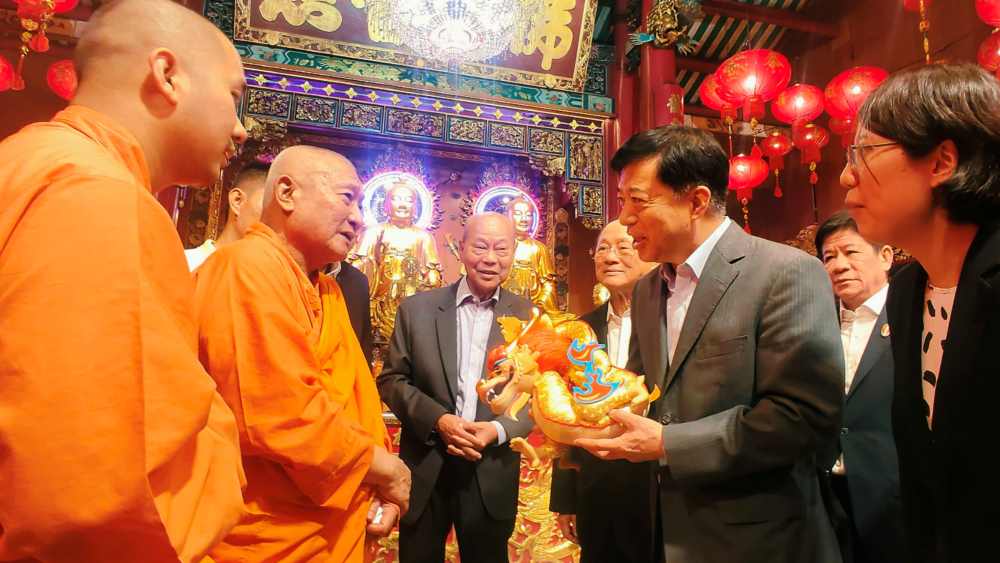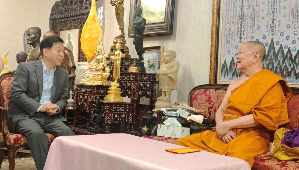 韩志强还参观了金佛寺、龙莲寺,分别拜访了中泰友人颂德·通猜副僧王、仁谊副僧王。韩志强向他们介绍了中泰日前签署互免签证协议等中泰友好关系新发展,并就中泰人文往来、宗教交流等进行了沟通探讨。
