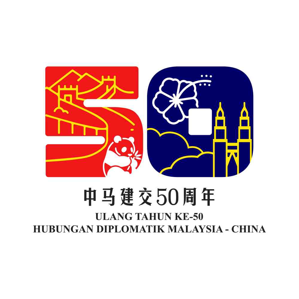 纪念标志灵感来源于马来西亚传统峇迪风格,以构成中马国旗的红、蓝、黄为底色,汇集中国的长城、大熊猫和马来西亚的双子塔、木槿花等两国代表性元素,凸显中马两国携手并肩、命运与共的友好关系。
