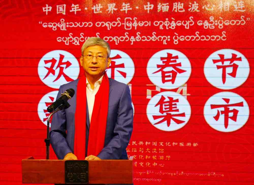 立春时节,春风送暖,阳光和煦,位于仰光市中心的仰光中国文化中心张灯结彩,年味浓浓。中缅各界友好人士纷至沓来,新春集市现场人头攒动。