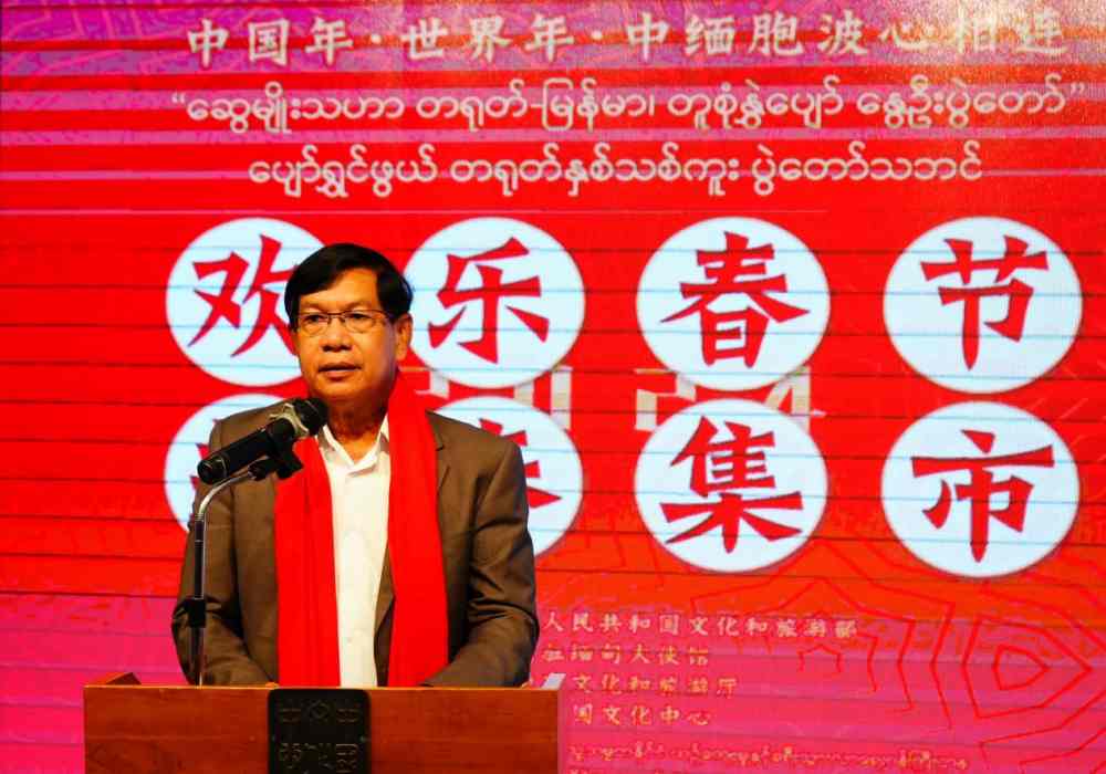 梭登致辞表示,缅甸华人华侨众多,春节历年来是仰光等地华社和各民族民众共同庆祝的重要节日。新年新气象,缅甸愿同中方深化务实合作,持续推进缅中命运共同体建设,祝愿缅中两国和世界人民幸福安康。