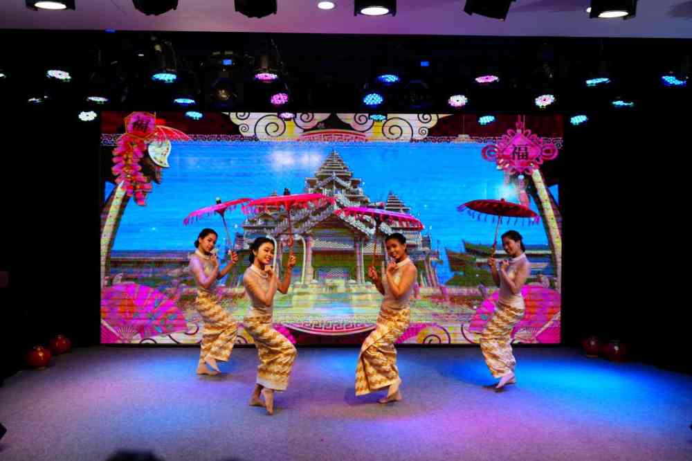 配乐舞蹈《甜蜜蜜》融合了中国歌曲和缅甸传统舞蹈,展示了中缅两国文化的交融。