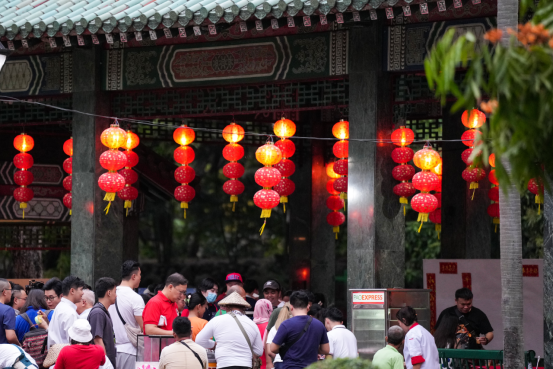 当晚,黎刹公园中国园灯火璀璨,数千余名菲律宾各界民众游园观展,参与打灯谜、书法、糖画等文化体验项目,欣赏中菲文艺演出和焰火表演,感受两国传统文化交流互鉴的独特魅力,在欢笑中共度欢乐春节。