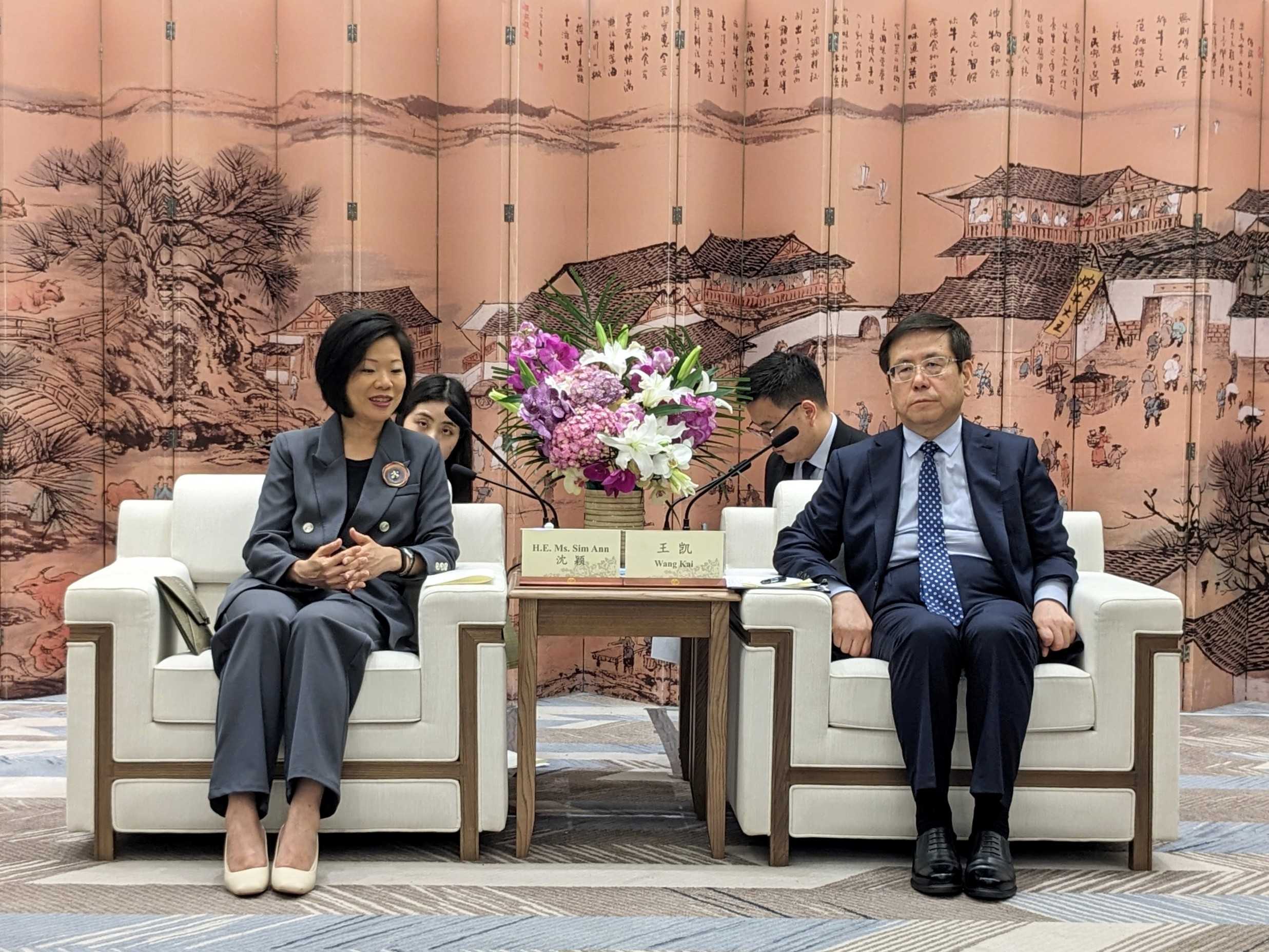 沈颖拜访河南省省长王凯。图片来源:新加坡外交部