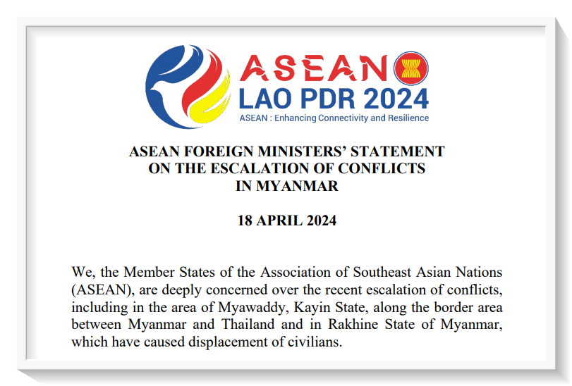 AseanAll /东盟全景讯 2024年4月18日 ,东盟国家外长发表一份联合声明称,东盟国家呼吁缅甸冲突各方立即停止武装暴力,采取一切必要措施缓解国内紧张局势并保障民众安全。