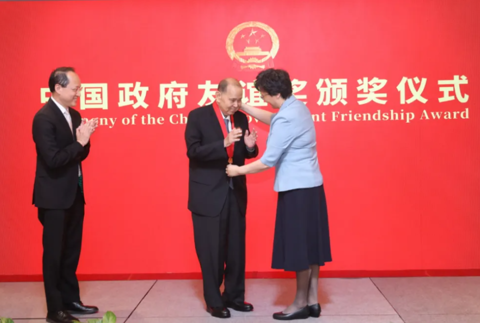 中国政府友谊奖是中国政府专门为表彰对中国改革发展作出重要贡献的来华工作外国专家设立的荣誉奖项,2023年度共有50名外国专家获此殊荣。2023年,由中国侨联推荐申报,施恭旗荣获当年度中国政府友谊奖。