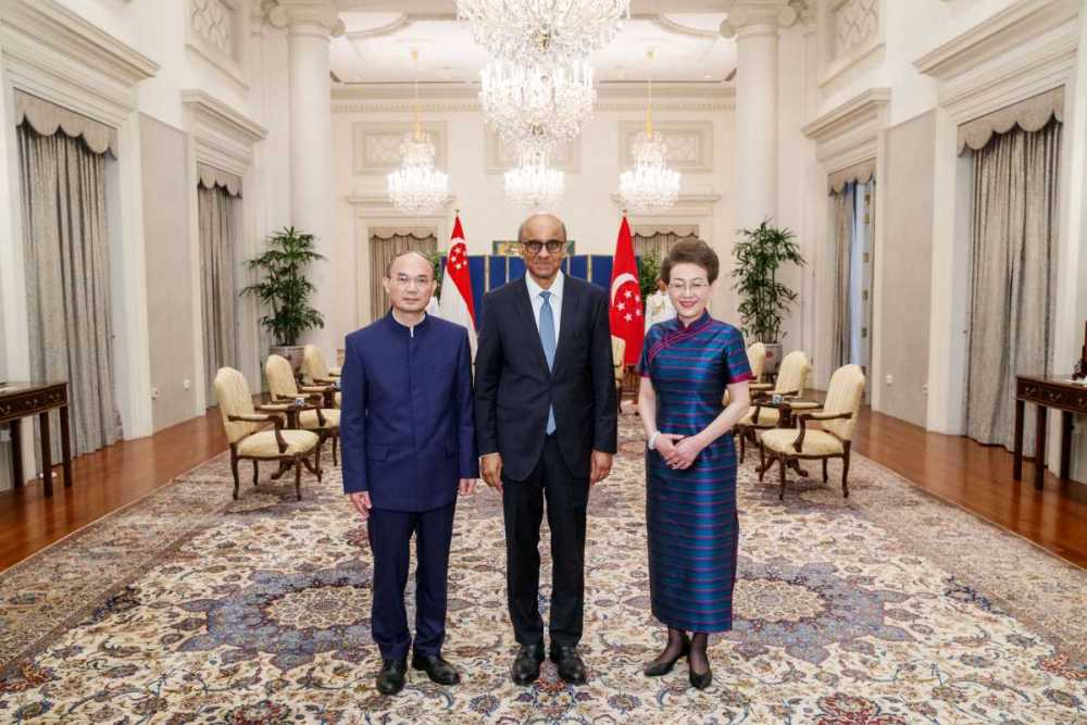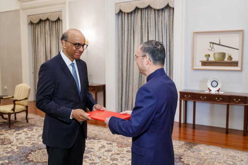 AseanAll /东盟全景讯 中国驻新加坡大使馆消息,2024年4月30日,新任中国驻新加坡大使曹忠明向新加坡总统尚达曼递交国书。