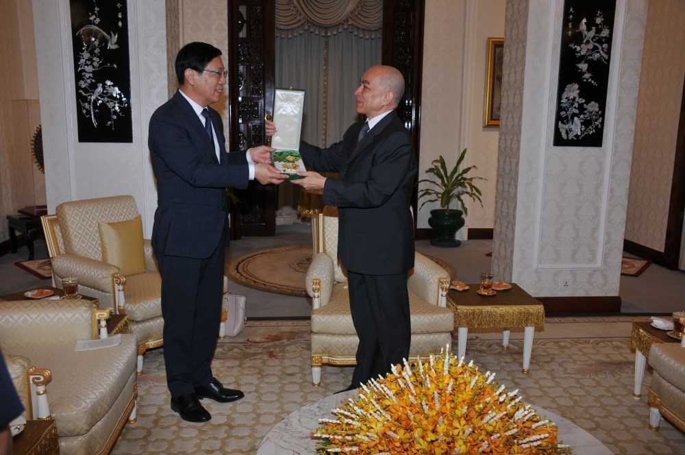 西哈莫尼向王文天颁授了“索瓦塔拉大十字勋章”,感谢王文天任内为巩固柬中传统友谊、拓展柬中互利合作、促进柬经济发展繁荣作出的贡献。