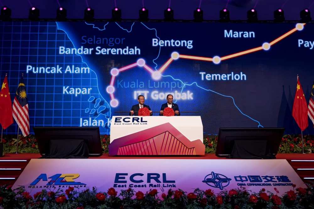 AseanAll /东盟全景讯 当地时间2024年6月19日,马来西亚东海岸铁路项目(ECRL)鹅唛车站动工,中马两国总理出席仪式。