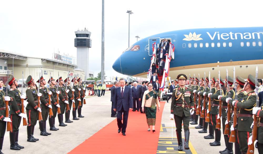 AseanAll /东盟全景讯 据越南政府门户网(VGP)消息,应老挝人民革命党中央总书记、国家主席通伦·西苏里邀请,2024年7月11日上午,越南国家主席苏林主席与越南高级代表团已抵达首都万象,开始对老挝人民民主共和国进行国事访问。