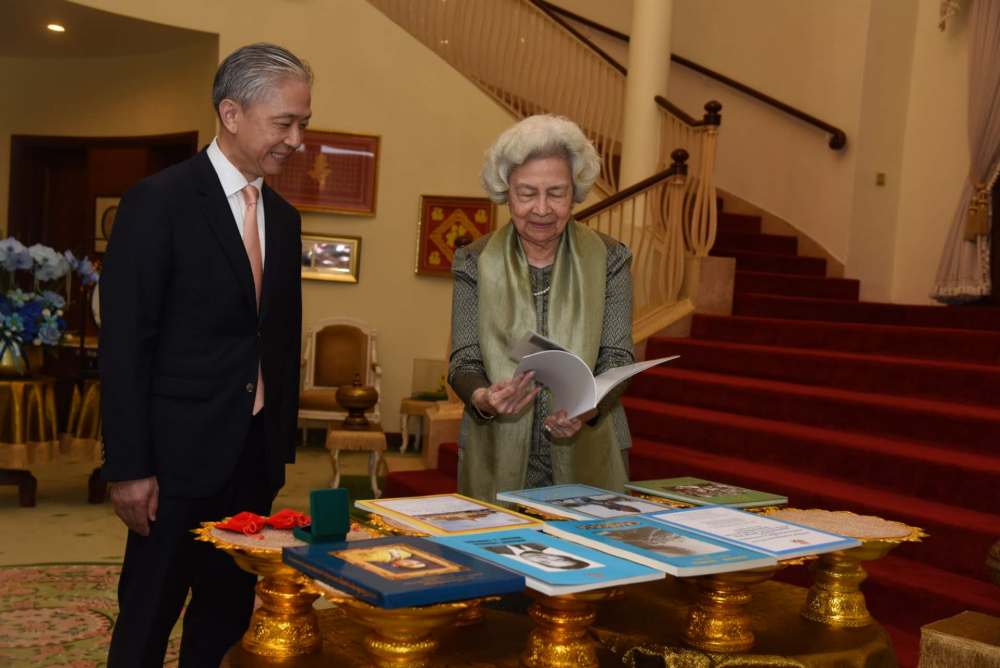 汪文斌转达中国国家主席习近平和夫人彭丽媛教授对太后的亲切问候和良好祝愿,高度评价西哈努克太皇、莫尼列太后、西哈莫尼国王以及柬王室为发展中柬关系作出的重要贡献,祝太后健康长寿。