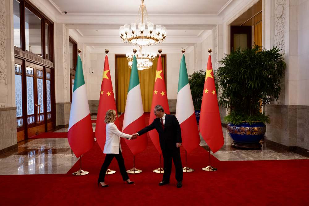 李强表示,今年是中意建立全面战略伙伴关系20周年。20年来,双方政治互信持续巩固,务实合作成果丰硕,贸易投资规模不断扩大,实实在在惠及两国人民。中国国家主席习近平将同总理女士会晤,共同为中意关系未来发展擘画蓝图。中方愿同意方一道,落实好两国领导人重要共识,继承和发扬两国友好传统,全面推进各领域交流合作,为两国人民带来更多福祉,为促进全球和平和发展事业作出更大贡献。