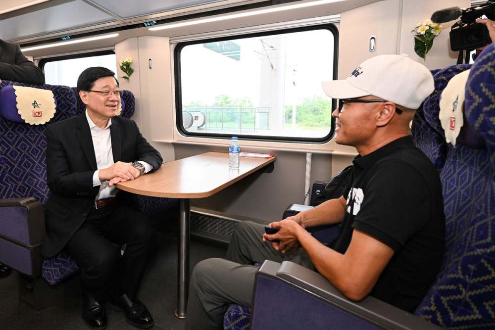 李家超一行之后到访中国老挝铁路终点站——万象火车站,了解铁路的运作情况。该铁路是中国和老挝在“一带一路”合作框架下的重要项目,肩负起联通两国的重要任务。