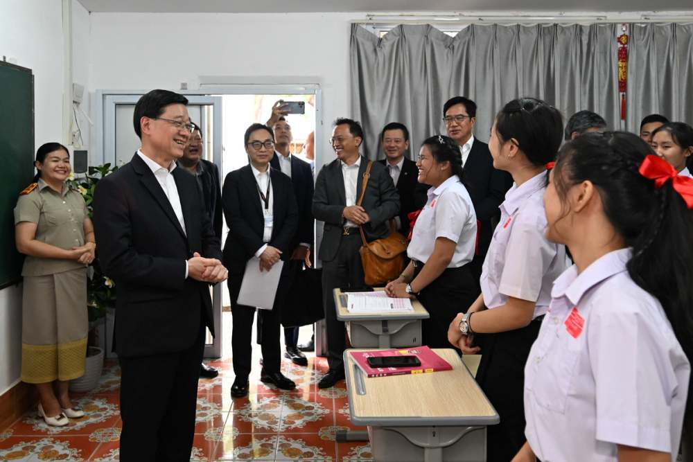 下午,李家超到访老挝一所中学,参观教学设施和观看学生表演。李家超表示,特区政府设立“一带一路”奖学金,支持包括老挝在内的“一带一路”沿线国家和地区的杰出学生到香港升读公帑资助全日制大学课程。他期待未来会有更多来自老挝的人才留港发展。