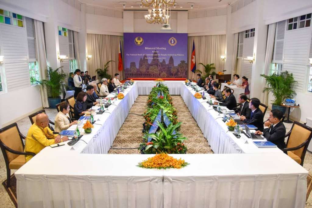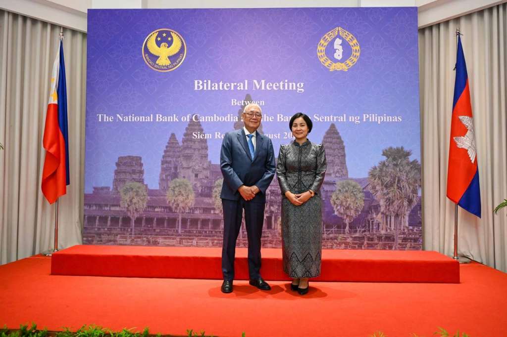 AseanAll /东盟全景讯 2024年8月19日,柬埔寨国家银行(NBC)行长谢丝蕾(Chea Serey)和菲律宾中央银行(BSP)行长雷莫洛纳(Eli M. Remolona, Jr.)在柬埔寨暹粒省主持了高级别双边会议和谅解备忘录(MOU)签署仪式,以促进两国央行之间的更密切合作。