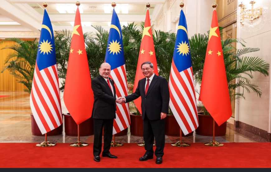 AseanAll /东盟全景讯 中国外交部消息,2024年9月20日下午,中国国务院总理李强在北京人民大会堂会见到中国进行国事访问的马来西亚最高元首易卜拉欣。