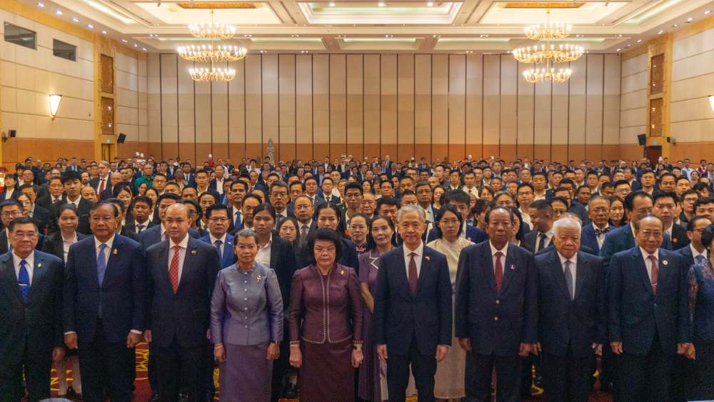 柬埔寨国会主席昆索达莉,柬埔寨人民党副主席迪班亲王、梅森安亲王,柬埔寨参议院第一副主席布拉索昆,柬埔寨国会第一副主席钱业,柬埔寨副首相翁赛维索和多位王室成员、国务大臣、大臣及各界代表近千人出席。