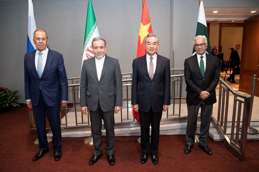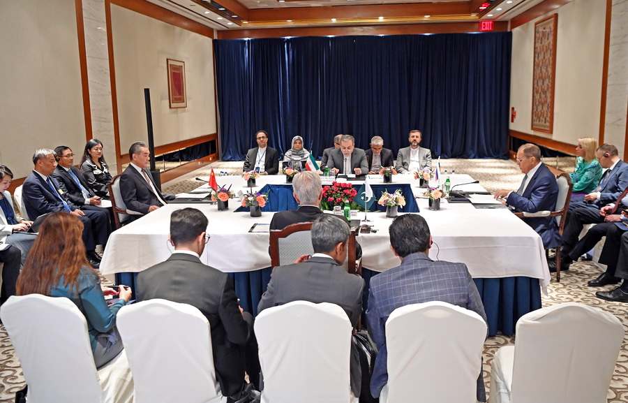 AseanAll /东盟全景讯 中国外交部消息,当地时间2024年9月27日,中共中央政治局委员、中国外交部长王毅在纽约联大期间同俄罗斯外长拉夫罗夫、巴基斯坦国防部长阿西夫、伊朗外长阿拉格齐举行四国外长阿富汗问题第三次非正式会议。