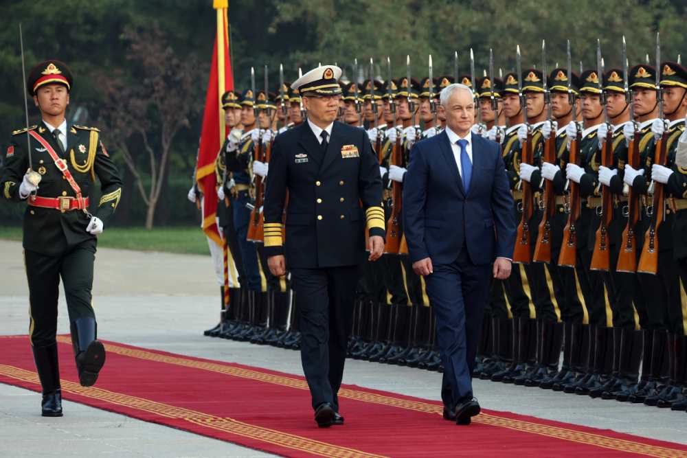 据中国国防部官网消息,2024年10月14日,中国国防部长董军为别洛乌索夫举行欢迎仪式,并陪同检阅中国人民解放军仪仗队。