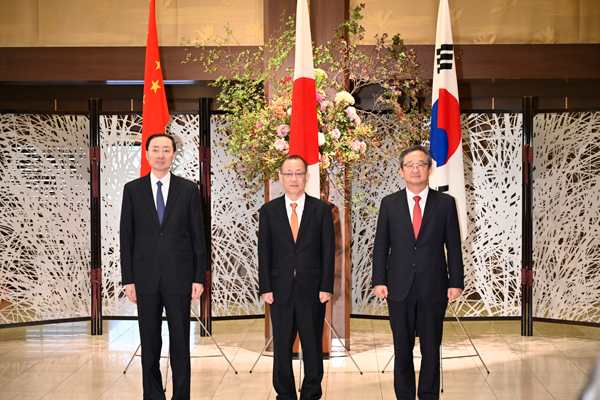 孙卫东表示,今年是中日韩合作启动25周年。三国要坚守合作初心,以互尊互信为基本遵循,维护好双边关系,筑牢三国合作政治基础;以机制化为重要依托,盘活存量,打造增量,提升各领域合作水平;以开放共赢为长远目标,重启中日韩自贸协定谈判,释放经贸合作潜力;以科技创新为机遇,培育壮大新兴产业,为三国高质量发展注入新动能;以民心相通为支撑,扩大人文交流,增进相互理解认知;以共同应对社会变革挑战为抓手,促进可持续发展,携手谱写中日韩合作新篇章。
