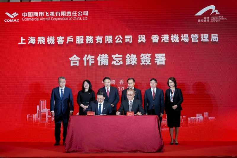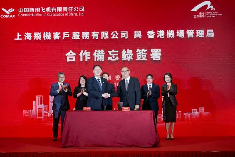 合作备忘录由香港机管局机场运行执行总监姚兆聪及中国商飞客服副总经理朱明签署。中国中央人民政府驻香港特别行政区联络办公室副主任尹宗华、中国外交部驻港特派员公署特派员崔建春、香港运输及物流局局长林世雄、香港民航处处长廖志勇、香港机管局署理行政总裁张李佳蕙及中国商飞集团副总经理李玲在场见证。