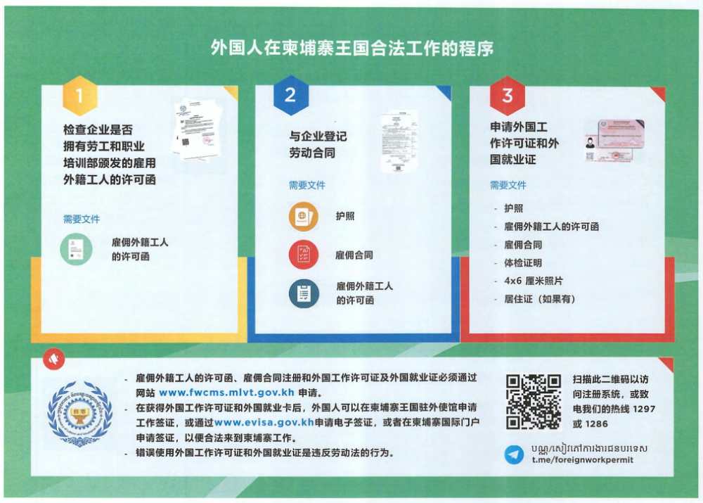 消息称,近日,柬埔寨政府照会各驻柬使团,提醒在柬工作的外国公民注意遵守柬埔寨劳工法,在柬合法就业。
