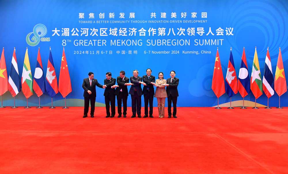 AseanAll /东盟全景讯 中国外交部消息,2024年11月7日,大湄公河次区域经济合作第八次领导人会议在中国云南昆明举行,中国国务院总理李强和柬埔寨、老挝、缅甸、泰国、越南政府首脑以及亚洲开发银行行长出席,会议通过《大湄公河次区域经济合作第八次领导人会议宣言》。