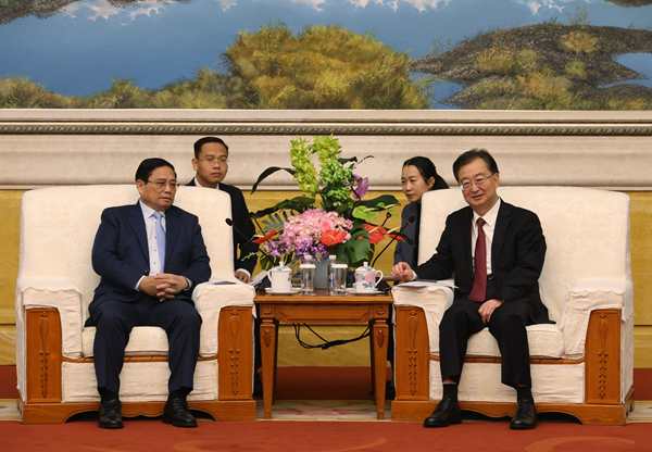 2024年11月6日,中共云南省委书记王宁(右)在昆明会见越南总理范明政。图片来源:云南政府网
