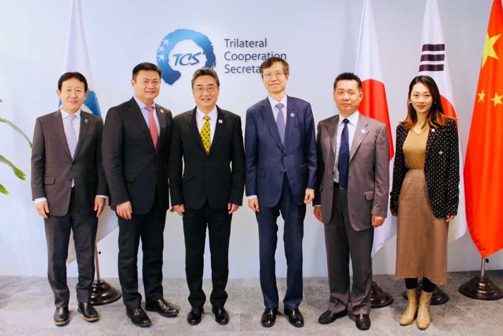AseanAll /东盟全景讯 2024年11月8日,中国—东盟中心秘书长史忠俊大使访问韩国首尔期间应邀到访中日韩合作秘书处并同中日韩合作秘书处秘书长李熙燮会见,副秘书长图师执二和颜亮在座。
