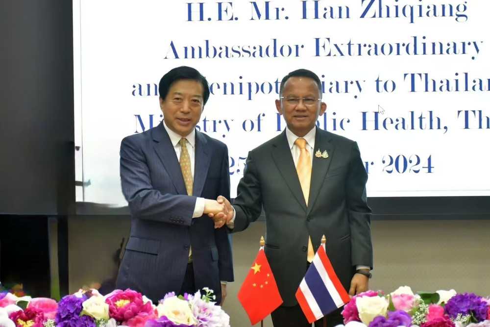 AseanAll /东盟全景讯 中国驻泰国大使馆消息,2024年11月25日下午,中国驻泰国大使韩志强拜会泰国新任公共卫生部部长颂萨。
