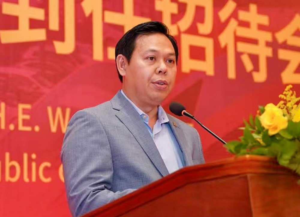 印尼地方代表理事会主席纳加穆丁致辞,热烈欢迎王鲁彤大使履新。
