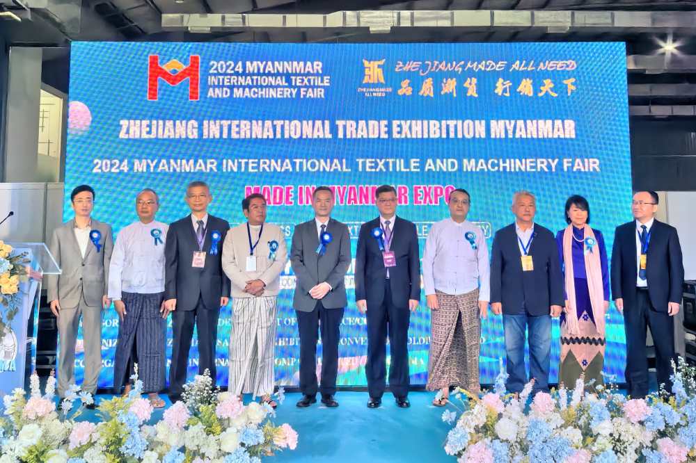 中国驻缅甸大使馆参赞欧阳道冰、缅商务部贸易促进司司长特林、缅甸全国工商联副主席桑林、中国纺织品进出口商会副会长张新民等出席。