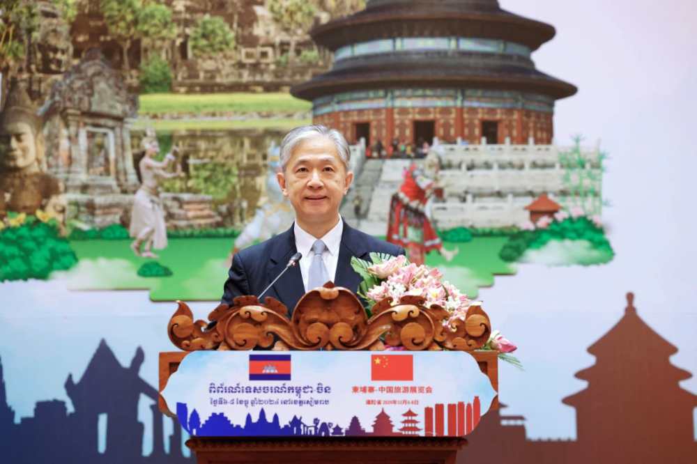 汪文斌在致辞中表示,加强中柬旅游合作离不开两国政府的支持引导,更需要双方旅游业界的参与投入。现在正是到柬埔寨旅游的好时候。中国驻柬使馆将同柬方一道,继续为深化两国旅游合作创造有利条件、营造良好环境。