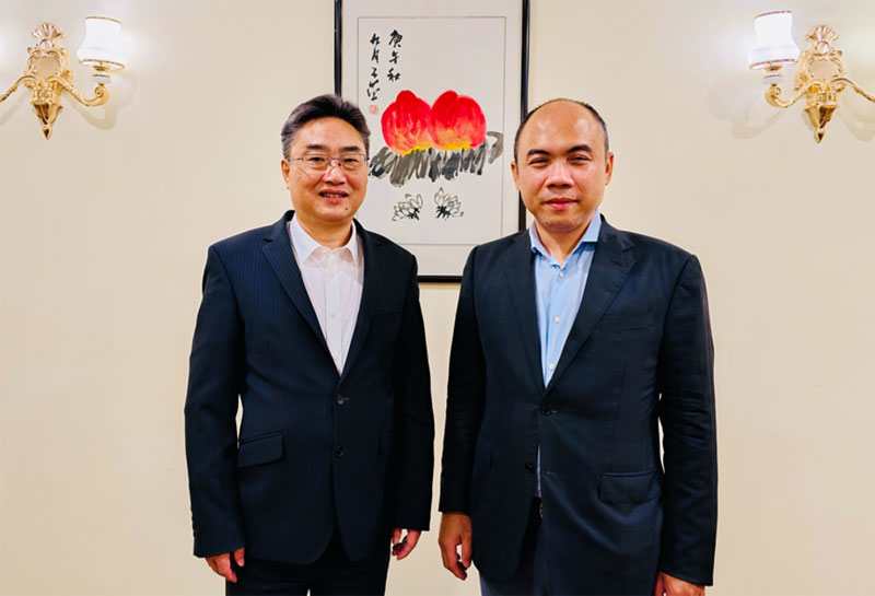 AseanAll /东盟全景讯 中国—东盟中心消息,2024年12月6日,中国—东盟中心秘书长史忠俊在柬埔寨首都金边同柬埔寨外交与国际合作部国务秘书、东盟事务高官康富工作交流。