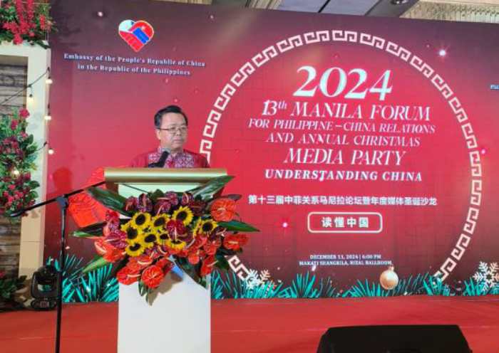 据中国驻菲律宾大使馆消息,2024年12月11日,中国驻菲律宾使馆举办第十三届“读懂中国”中菲关系马尼拉论坛暨2024年圣诞媒体沙龙。