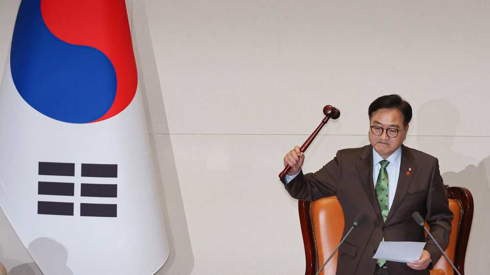 2024年12月14日下午,韩国国会议长禹元植宣布对总统尹锡悦弹劾案通过。他说,从宣布紧急戒严的那一刻开始到今天这一刻,各位国民表现出的对民主主义的恳切、勇气和献身,带动了这个决定。图片来源:韩国国会官网