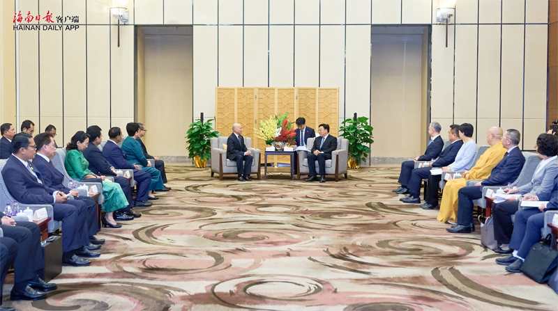 柬埔寨副首相兼王宫事务部大臣郭索帕,中国驻柬埔寨大使汪文斌,海南省领导倪强、尹丽波参加会见。