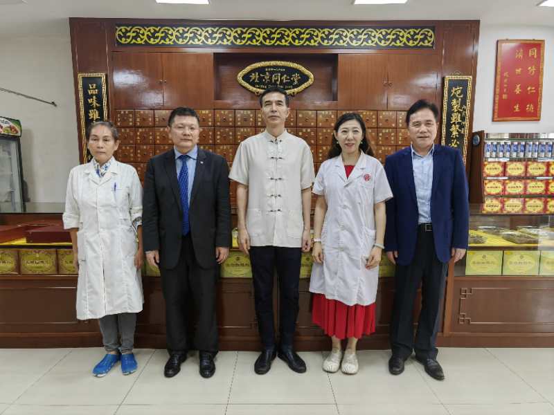 肖建国听取了北京同仁堂公司在文莱发展运营情况,充分肯定公司十余年来为当地民众提供健康服务,以及为传播中医药文化所做出的积极贡献。希望公司继续发挥独特优势,坚持依法合规绿色经营,提高安全意识,尊重本地风俗习惯,加大中医药宣传力度,为深化中文关系贡献力量。
