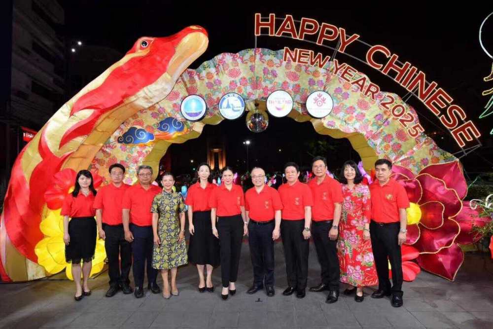 中国驻泰使馆公使吴志武、泰国家旅游局局长塔帕妮等出席并启动彩灯展,曼谷市政府、唐人街欢乐春节组委会代表等数百人共同参加。