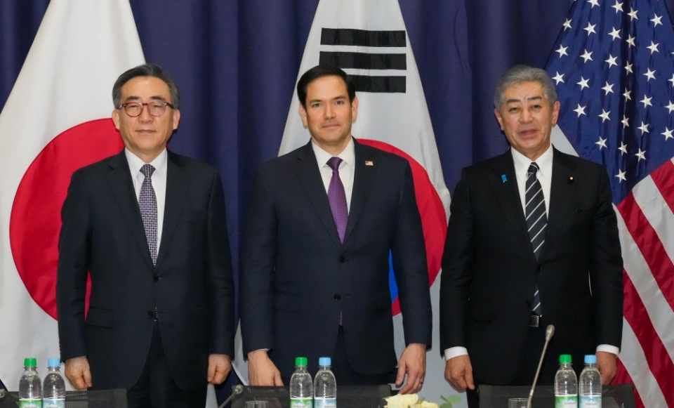 韩国外交部长官赵兑烈、美国国务卿马尔科·鲁比奥、日本外务大臣岩屋毅与会。三方就加强三边合作、应对朝核等朝鲜问题、地区局势、深化经济合作等事宜交换意见。