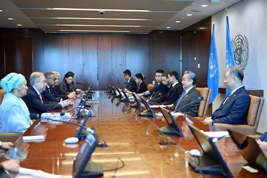 AseanAll /东盟全景讯 中国外交部消息,当地时间2025年2月18日,中共中央政治局委员、中国外交部长王毅在纽约主持联合国安理会高级别会议期间会见联合国秘书长古特雷斯。