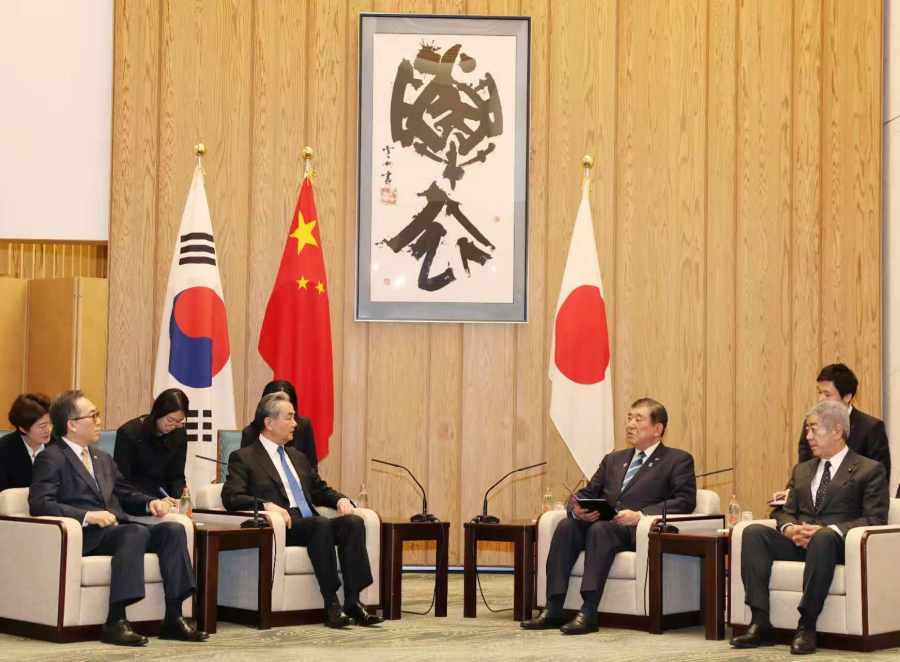 王毅强调,今年是中国人民抗日战争和世界反法西斯战争胜利80周年。只有正确对待历史,才能更好开辟未来。希望日韩同中方一道,树立正确二战史观,坚持多边主义理念,维护联合国核心地位,推动三方合作不断发展,为地区和世界和平繁荣作出各自的贡献。