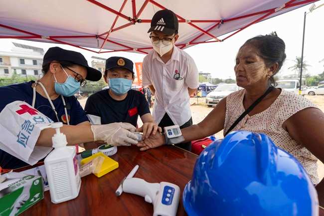中国国际救援队下一步将继续分批次组织医疗力量赴曼德勒城区各安置点开展医疗巡诊。