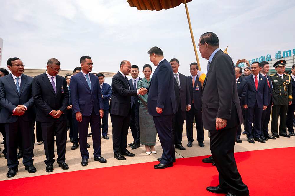 习近平离开金边时,柬埔寨人民党主席、参议院主席洪森,柬埔寨参议院第一副主席吴波烈,柬埔寨国会第一副主席钱业,郭索帕、布拉索昆、韩春那洛、韶索卡、洪玛尼等五位柬埔寨副首相,柬埔寨王家军陆军副司令洪玛讷等高级官员到机场送行。中国驻柬埔寨大使汪文斌也到机场送行。