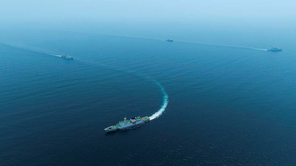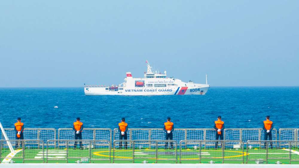 中越海警舰艇编队按照既定方案和航线,沿中越北部湾海上分界线从南往北展开巡逻。