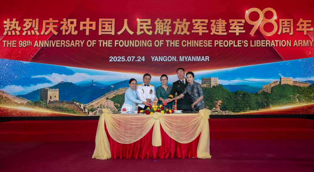 AseanAll /东盟全景讯 中国驻缅甸大使馆消息,2025年7月24日,中国驻缅甸使馆举行庆祝中国人民解放军建军98周年招待会。中国驻缅甸大使马珈、中国驻缅甸使馆国防武官曲喆及缅甸国防军总参谋长觉梭林上将等军政高层、驻缅使团和武官团、华侨华人及各界代表530余人出席。