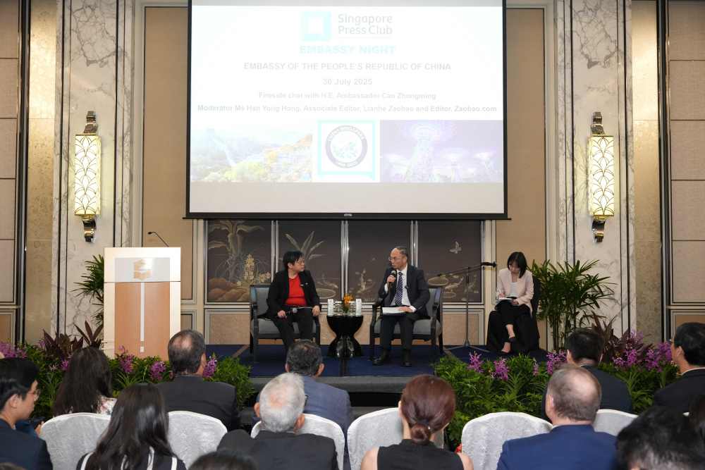 AseanAll /东盟全景讯 中国驻新加坡大使馆消息,2025年7月30日,中国驻新加坡大使曹忠明出席中国驻新使馆与新报业俱乐部共同举办的“使馆之夜”媒体对话会,与媒体代表座谈交流。